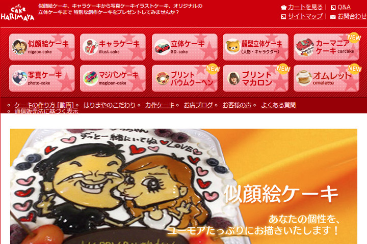 これからご紹介するサイトの順番はおすすめ順ではございません。「手描きのイラストケーキ」を取り扱っている通販サイトを手あたり次第検索し、見つけた順に載せているだけですので、紹介する順番・番号に、特に意味はございません。予めご了承くださいませ。