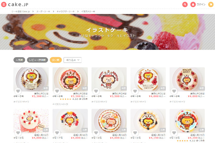 - 「手描きのイラストケーキ」が注文できる通販サイト